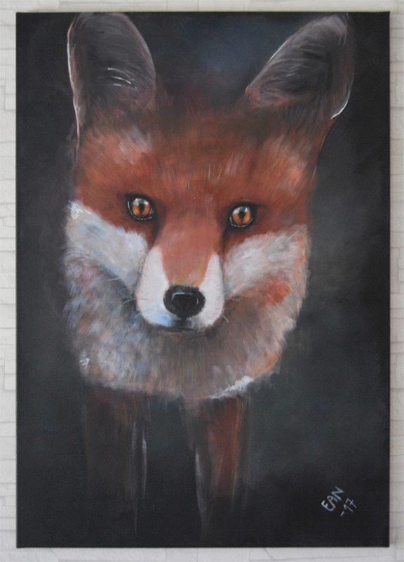 Kuvaus: Ketun muotokuva. Akryylimaalaus kankaalle,. Reunat on maalattu, joten taulu on ripustusvalmis