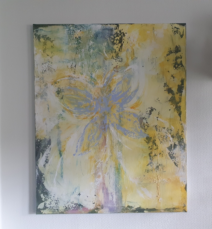 Kuvaus: Abstrakti, akryylimaalaus, sekatekniikka
