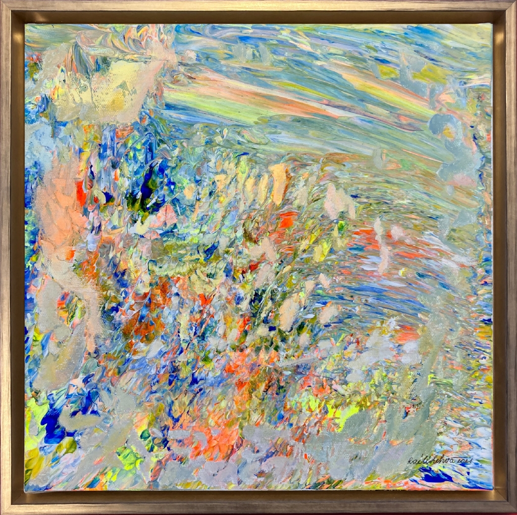 Kuvaus: Canvas, pinkopohja. Taulu on signeerattu, ripustusvalmis ja sen reunat on maalattu taulua mukaillen. Mukana toimitetaan aitoustodistus. Taulussa on kultaiset puukehykset.