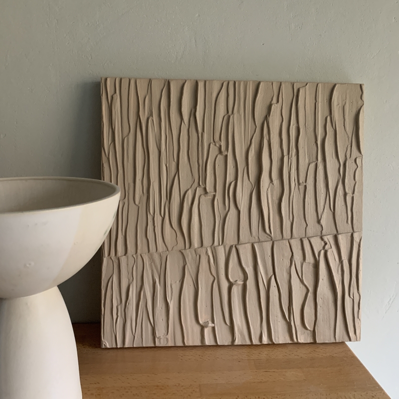 Kuvaus: Puualusta, pinnassa tekstuuri. Ripustusvalmis, reunat on maalattu. Nouto Turusta tai postitus