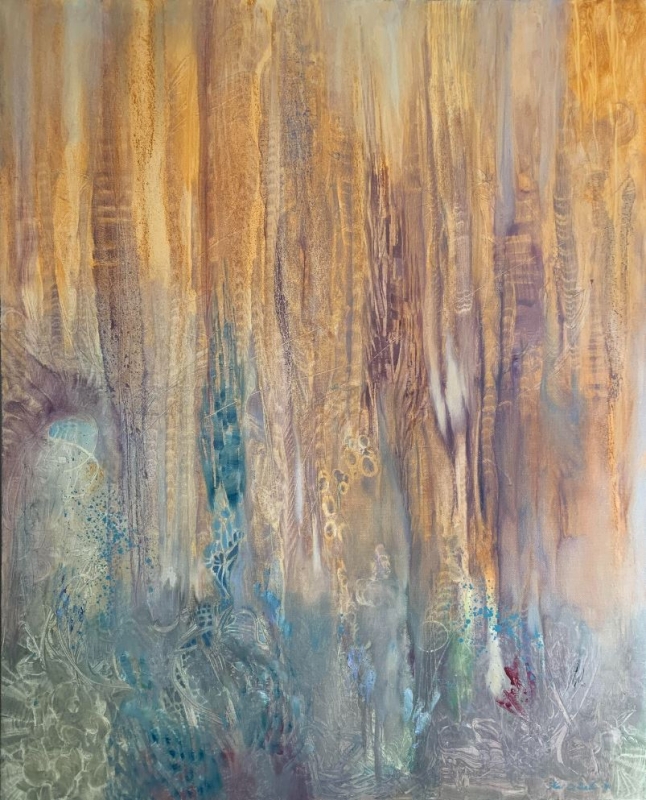 Kuvaus: Abstrakti teos. Vastalause lumimyräkälle kevään villein värein. Reunat maalattu, ripustusvalmis. Uniikki sisustustaulu.