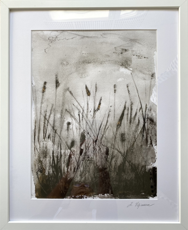 Kuvaus: Kehyksessä akryylimaalein paperille. Ohut muoviplexi.