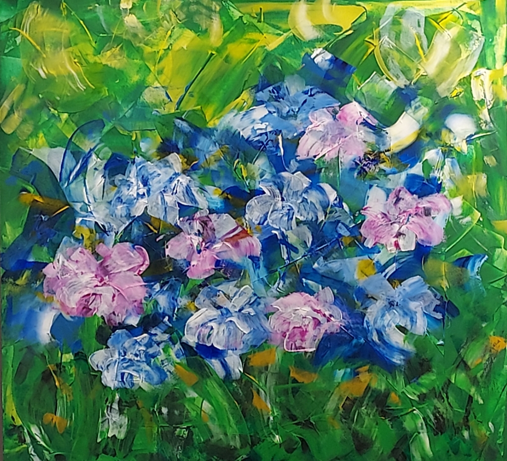 Kuvaus: abstrahoitu sinivihreä kukkateos