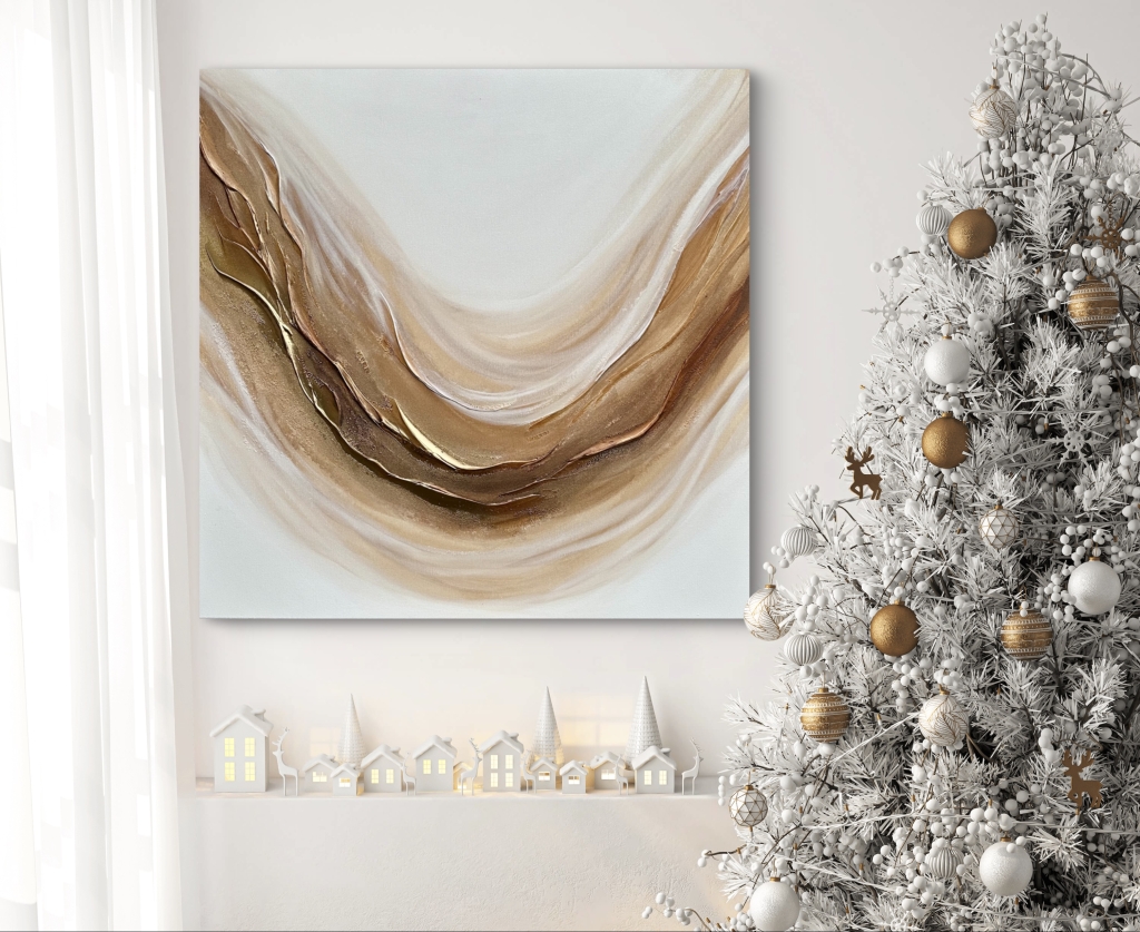 Kuvaus: Valkoinen, ruskeaa, beige ja kullanhohtoinen, sisältää myös tekstuuria