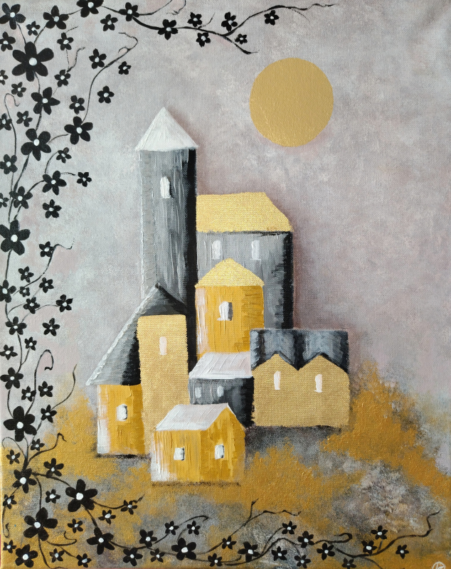Kuvaus: Satumainen ja Kullanhohtoinen akryylimaalaus kankaalla, suojalakka ja signeeraus, ripustusvalmis. 'Uskalla unelmoida!' Teos on kiilapuissa eikä tarvitse erillistä kehystä. Ilmainen toimitus Postin kautta.