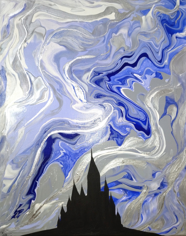 Kuvaus: Satumainen ja Hopeanhohtoinen akryylimaalaus kankaalla, suojalakka ja signeeraus. Teos on kiilapuissa eikä tarvitse erillistä kehystä. Ilmainen toimitus Postin kautta.