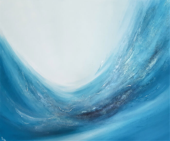 Kuvaus: ”Treasures of the sea” on suurikokoinen ja vaikuttava teos, joka pysäyttää katsojan tarkastelemaan veden liikettä. Teoksessa sininen, helmiäishohtoinen aalto kaartuu näyttävästi pysäyttäen hetken, jona valo osuu veden pintaan ja kuiskii syvyyksiin piilotetuista aarteista. Maalauksen voi ripustaa pystyyn tai vaakaan. Abstrakti maalaus paksulle pinkopohjalle, akryyli ja muotoilupasta. Ripustusvalmis. Lähetän pyydettäessä mielelläni lisäkuvia maalauksesta. Ilmainen toimitus Suomen sisällä lähimpään noutopisteeseen tai nouto Turusta.