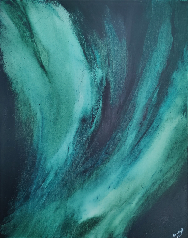 Kuvaus: Syvän vihreän ja turkoosin sävyinen akryylimaalaus, joka kuvastaa öistä taivasta ja rakkaan ihmisen kaipausta. Abstrakti akryylimaalaus pinkopohjalle, ripustusvalmis. Maalaus näyttää sinertävältä tai vihertävältä valosta riippuen. Pyydä ihmeessä lisäkuvia tarvittaessa! Teos on osa kokoelmaa "Every breath". Ilmainen toimitus Suomen sisällä lähimpään noutopisteeseen tai nouto Turusta.