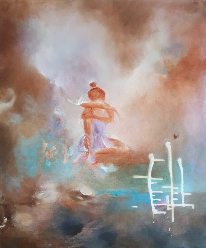 Kuvaus: Abstrakti akryylimaalaus, naishahmo