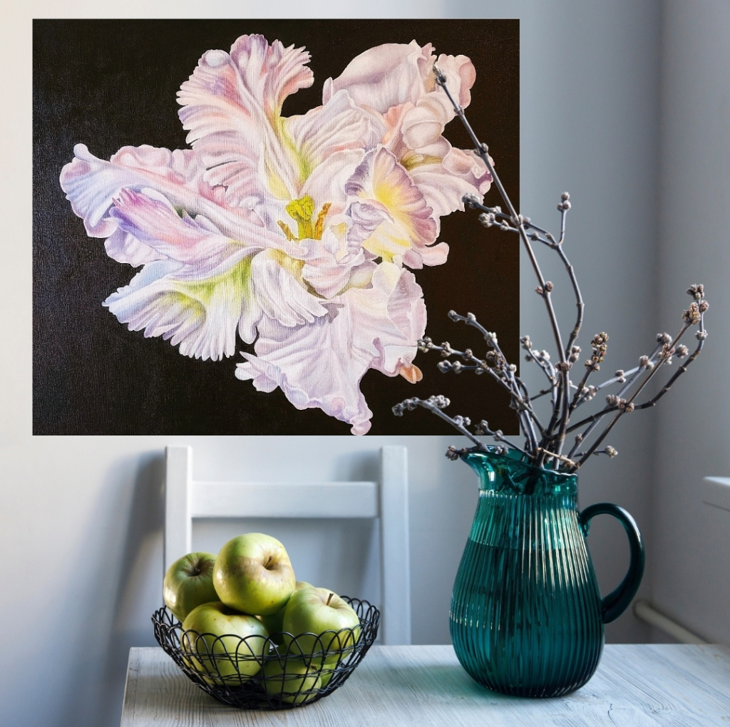 Kuvaus: öljyvärimaalaus kankaalle, ripustusvalmis, reunat maalattu, ei tarvitse kehystää.