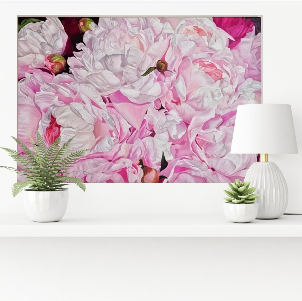 Kuvaus: öljyvärimaalaus kankaalle, ripustusvalmis. Reunat maalattu, ei tarvitse kehystää.