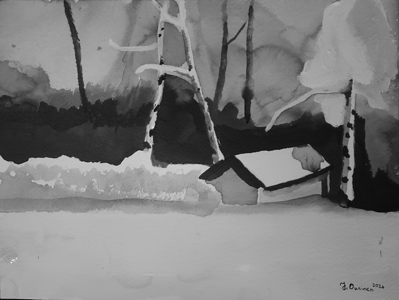 Kuvaus: maalattu musteella ja guassilla 300g 30,5X23cm akvarellipaperille, ei kehystä; postik. sis. hintaan