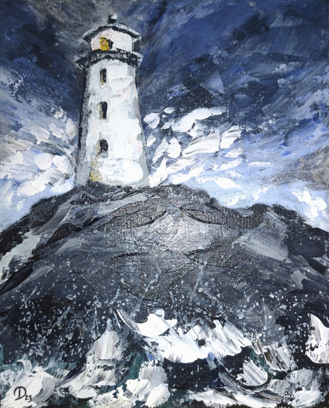 Kuvaus: Tunnelmallinen akryylimaalaus kangaspahvipohjalla, suojalakka. Ilmainen toimitus