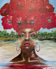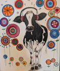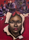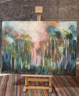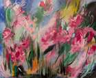 2025Abstrakti maalaus, joka esittää kukkia. Taulu on ripustusvalmis.