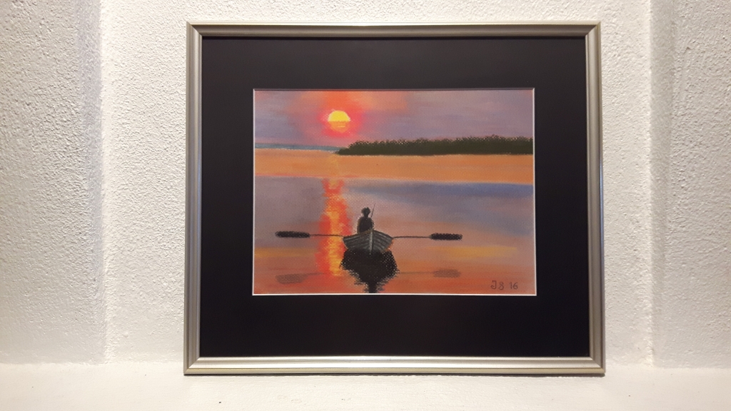Kuvaus: Tunnelmallinen hetki. Yksinäinen kalastaja. Taulussa mattalasi.