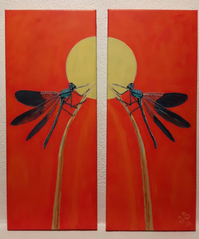 Kuvaus: Kaksiosainen värikäs maalaus.