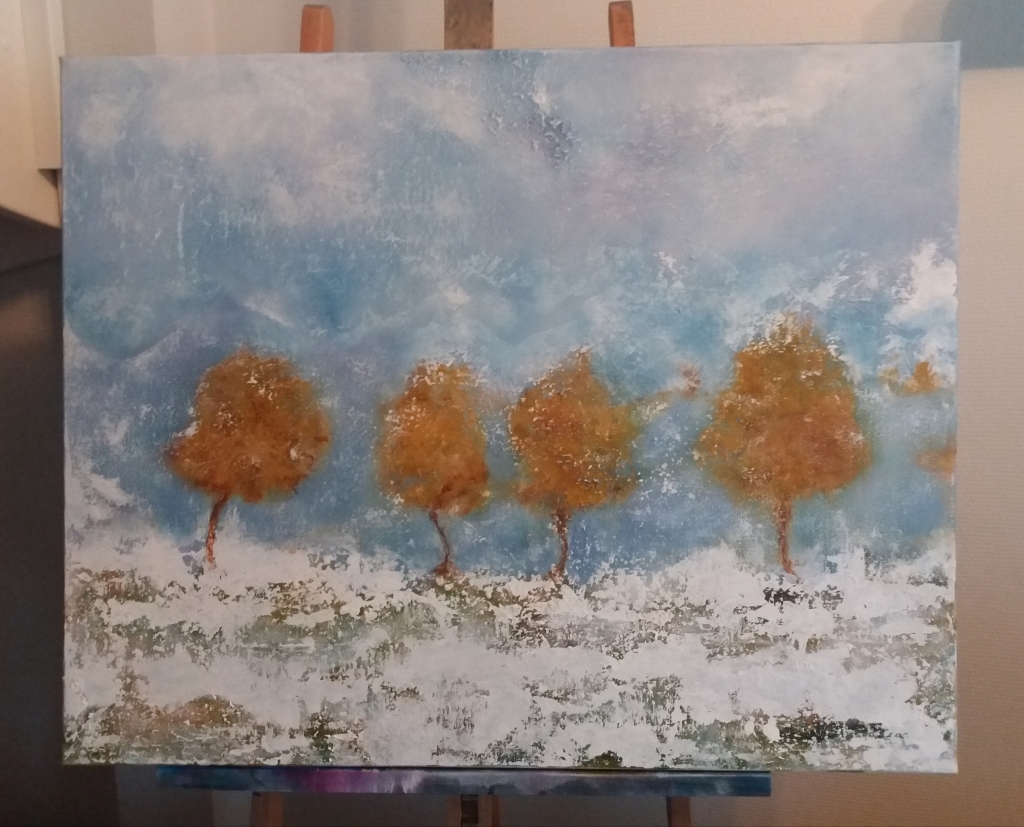 Kuvaus: Abstrakti akryylimaalaus, sekatekniikka