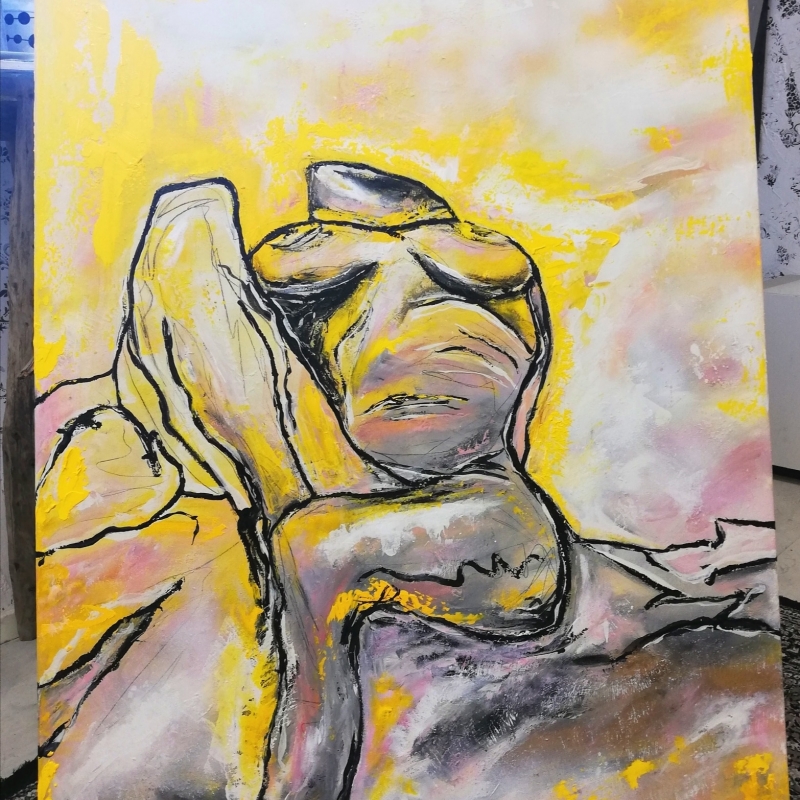 Kuvaus: Akryyleilla tehty sekatekniikalla canvaspohjalle. Ripustusvalmis. Rouhea pinta.