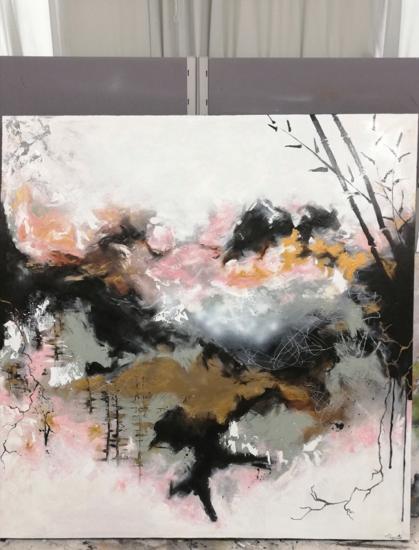 Kuvaus: MYYTY, Akryyleilla tehty sekatekniikalla canvaspohjalle. Ripustusvalmis. Rouhea pinta.