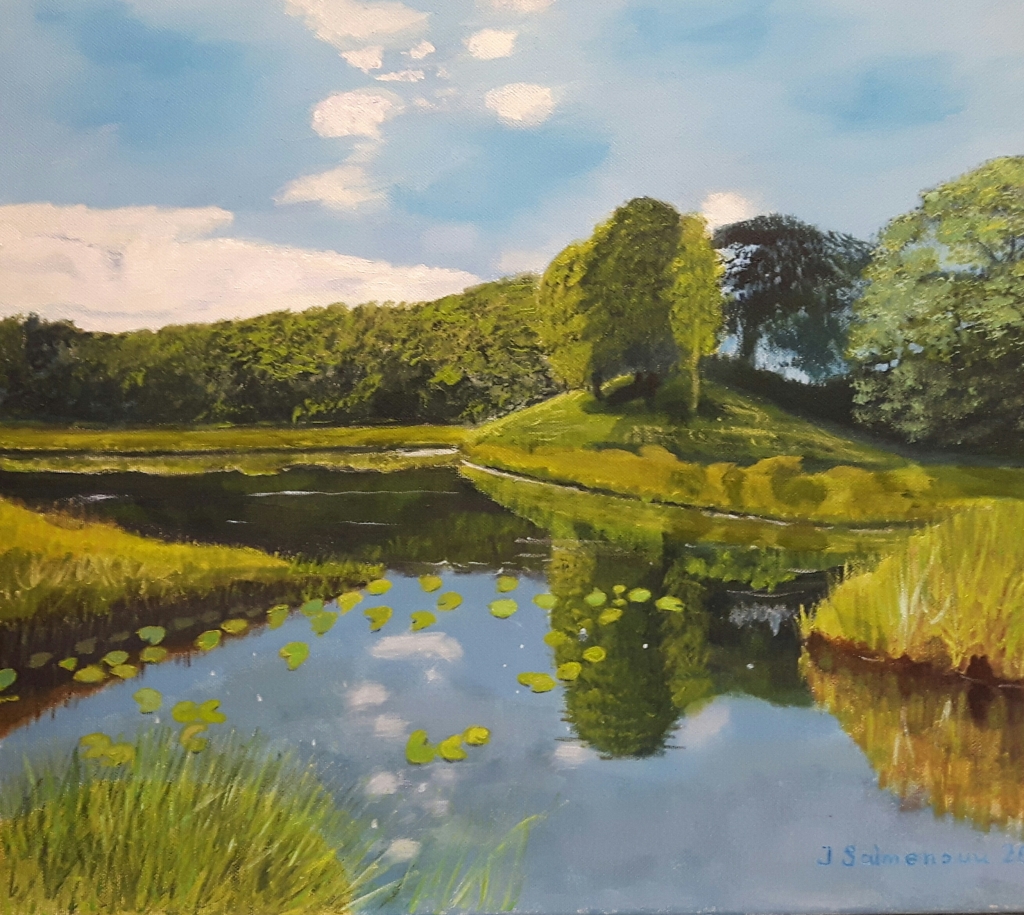 Kuvaus: Tässä paikassa ei tarvinnut tehdä mitään. Riitti, että katsoi, kuinka valkoiset poutapilvet lipuivat hitaasti taivaalla ja toistivat saman liikkeen sinisessä vedessä. Se oli hetki, jonka jokainen meistä haluaisi säilöä lasipurkkiin pahan päivän varalle - tai tässä tapauksessa, ikuistaa kankaalle.