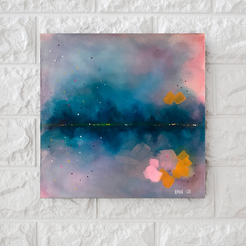 Kuvaus: Sinisävyinen abstraktimaalaus sopii moneen kotiin! Tämän teoksen reunat on maalattu, joten voit ripustaa tämän seinällesi ilman erillistä kehystämistä.