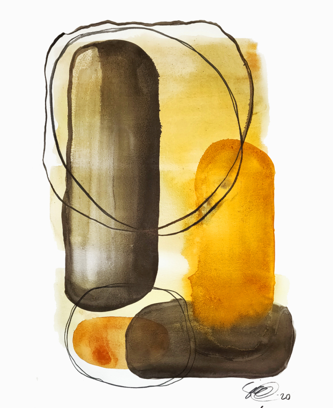 Kuvaus: Abstrakti akvarellimaalaus 200 -grammaiselle paperille. Koko A3.