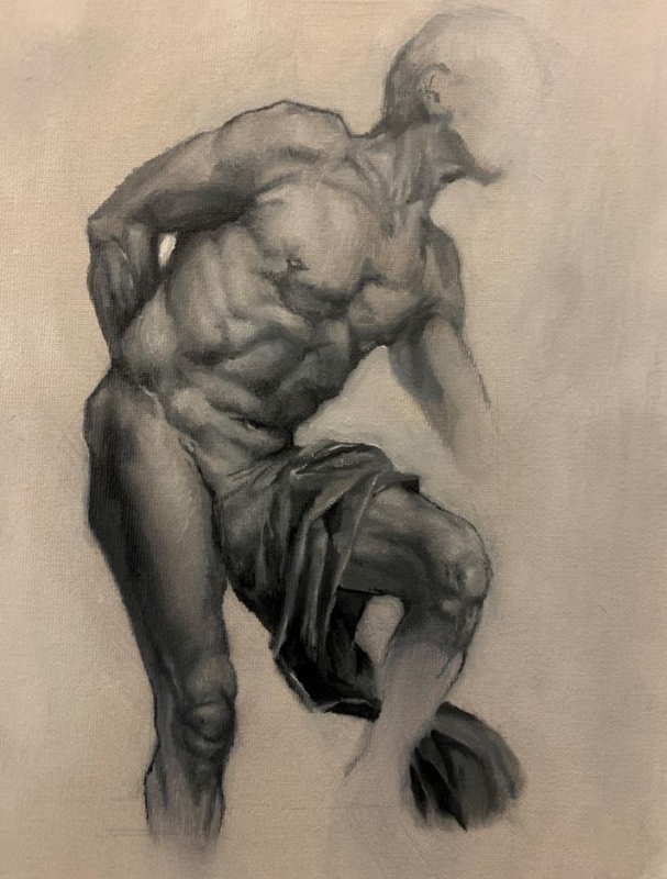 Kuvaus: Repin-Instituutin peruskurssin harjoitustyö. Öljyvärimaalaus arkille.