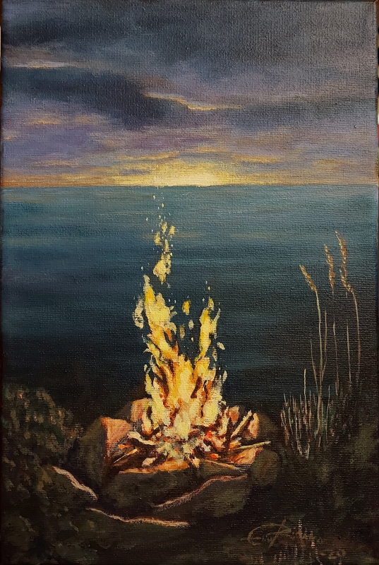 Kuvaus: Pieni nuotio maalaus kankaalle