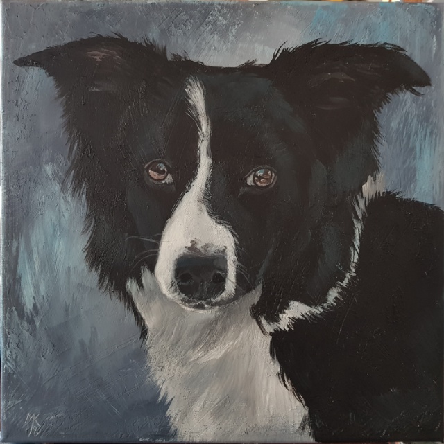 Kuvaus: Muotokuva koirasta/kissasta toiveiden mukaan. Tässä yksi esimerkkimaalaus, ko maalaus ei myynnissä.