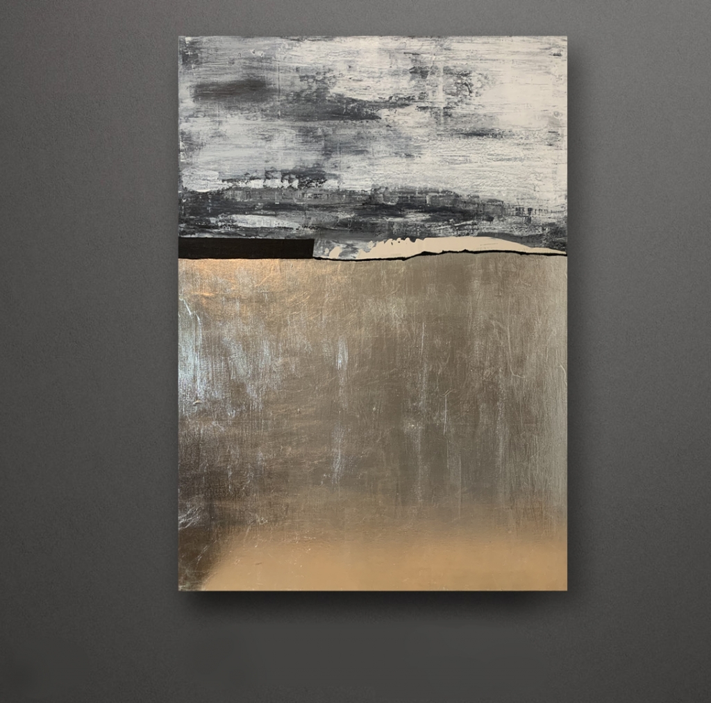 Kuvaus: Abstrakti maisemamaalaus akryyliväreillä, hopean kultaus kankaalle. Reunat on viimeistelty ja ripustusvalmis. Lisäkuvia saa kysymällä.