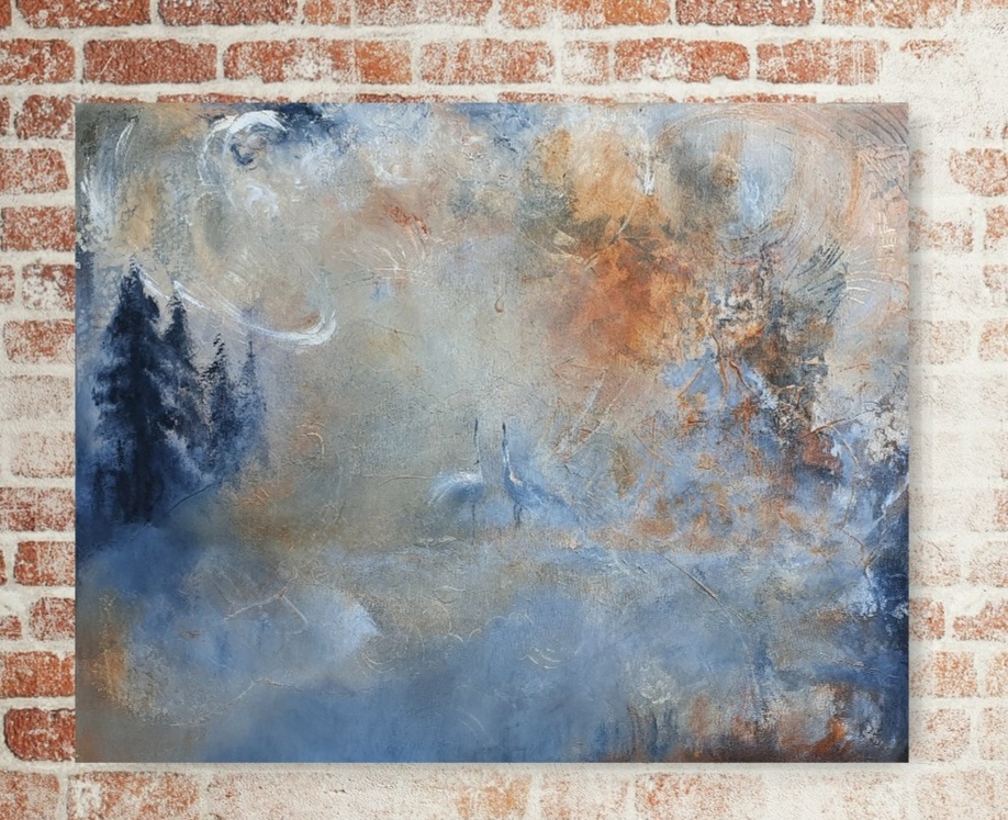 Kuvaus: Abstrakti akryylimaalaus, kurjet
