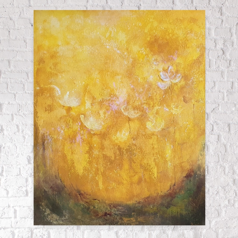 Kuvaus: Abstrakti akryylimaalaus, sekatekniikka