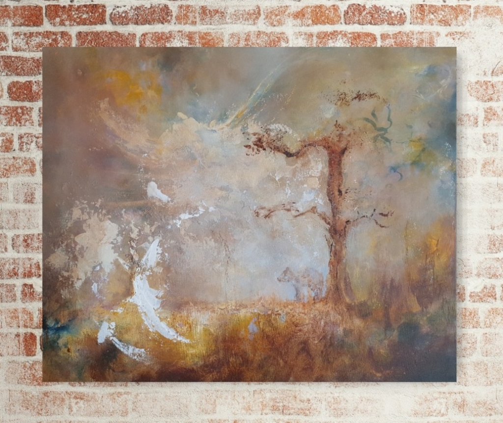 Kuvaus: Abstrakti akryylimaalaus, sekatekniikka