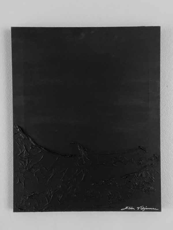 Kuvaus: Tummanpuhuva akryyliteos. Akryylimaali ja muu materiaali. Tyylikäs teos, ilman kehyksiä, mutta täysin ripustusvalmis.