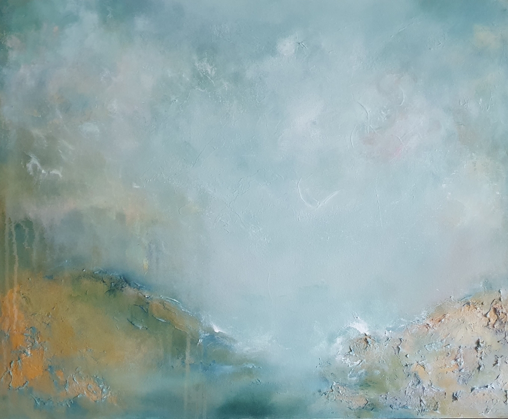 Kuvaus: Abstrakti akryylimaalaus, maisema, vesi