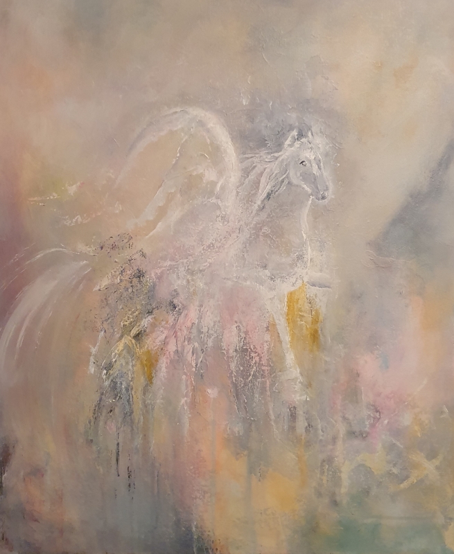 Kuvaus: Abstrakti akryylimaalaus, pegasos