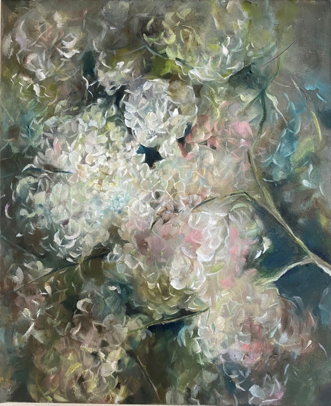 Kuvaus: Kukkamaalaus, canvaspohjaan, ilman kehyksiä ripustusvalmiina