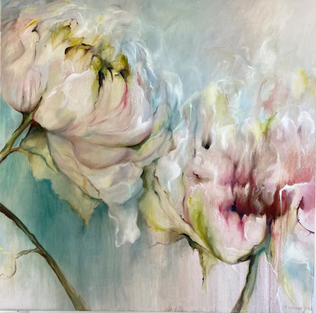 Kuvaus: Abstrakti kukkamaalaus, canvaspohjaan, ilman kehyksiä ripustusvalmiina