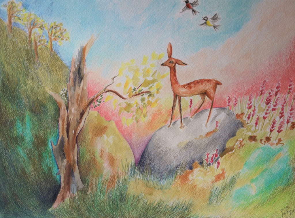 Kuvaus: Värikynä- ja vesivärityö akryylipaperille