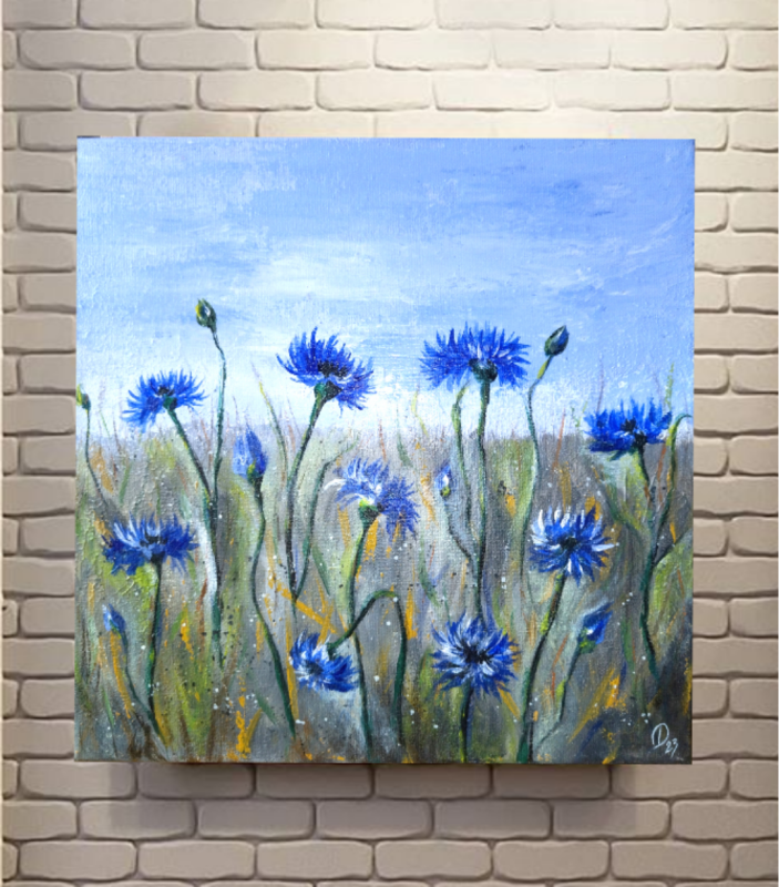 Kuvaus: Kesäinen Akryylimaalaus kankaalla, sekatekniikka, suojalakka. Teos on kiilapuissa, joten se ei tarvitse erillistä kehystä. Ripustusvalmis