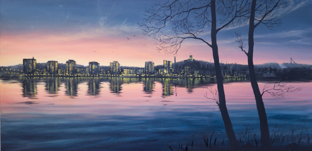 Kuvaus: Akryylimaaleilla canvakselle maalattu teos