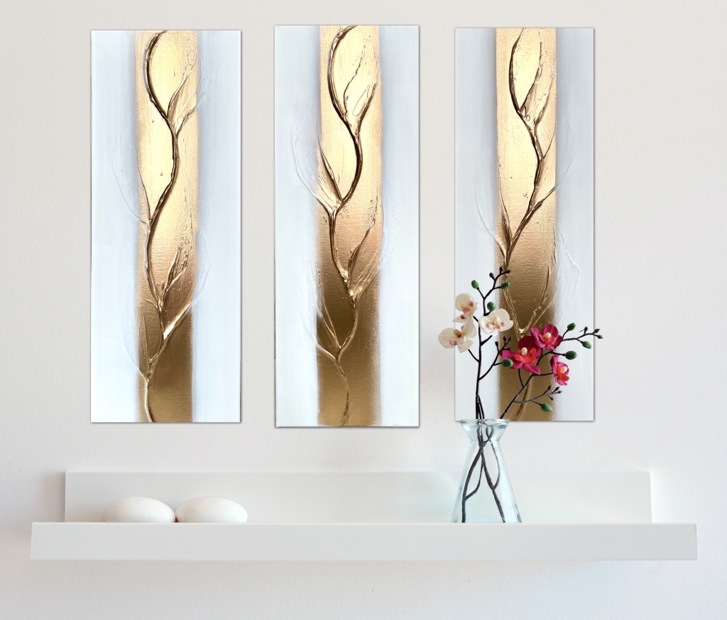 Kuvaus: Koostuu 3 kpl, jonka yhden koko 30x80cm, on valkoinen ja kullanhohtoinen