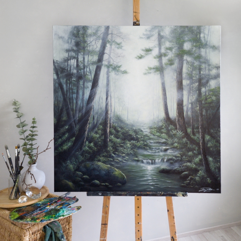 Kuvaus: Akryylimaaleilla canvakselle maalattu teos