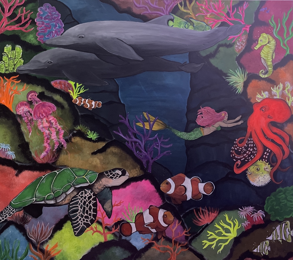Kuvaus: Akryylimaalaus kankaalle. UV-maali efekti. Uv kuvat sosiaalisessa mediassa.