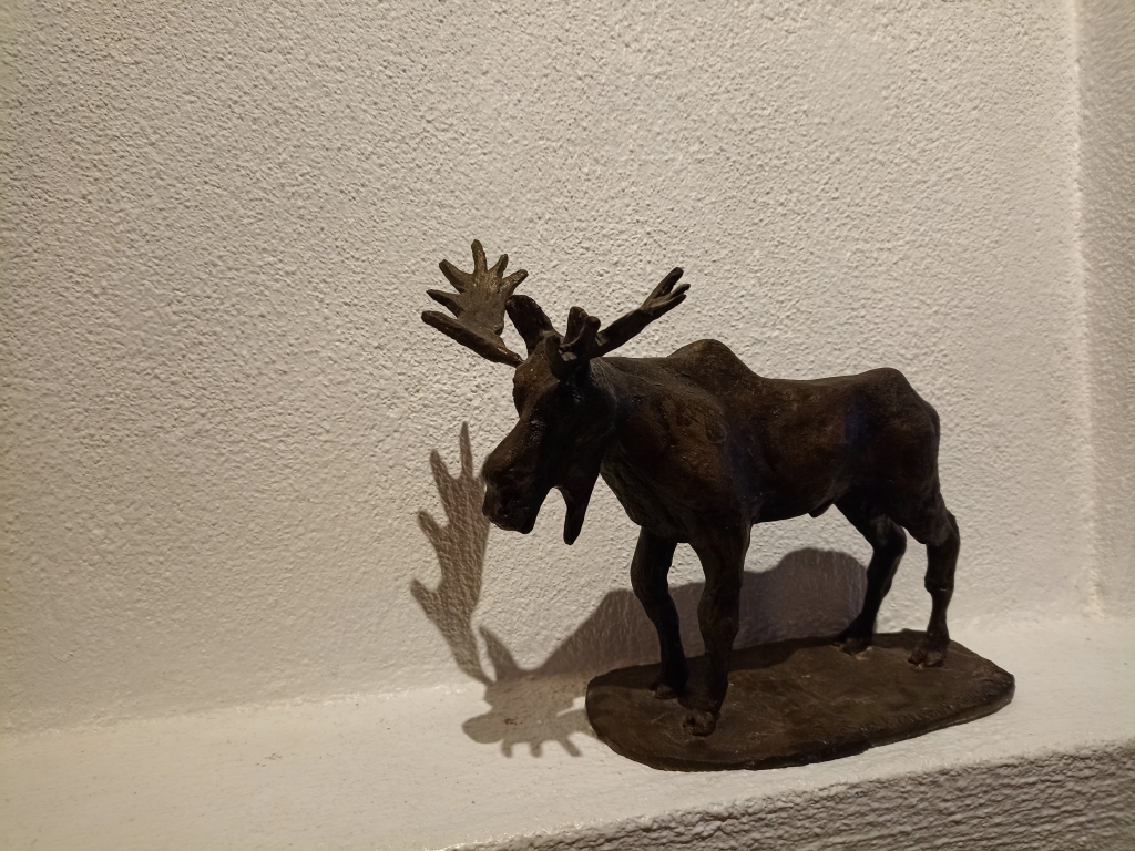 Kuvaus: Hirvi on tehty pronssijauhosta ja hartsista