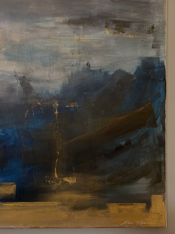 Kuvaus: Yksityiskohta teoksesta Unilintu, katso kokonaisuus. Upea tumma teos, syvällinen, tunteellinen abstrakti.