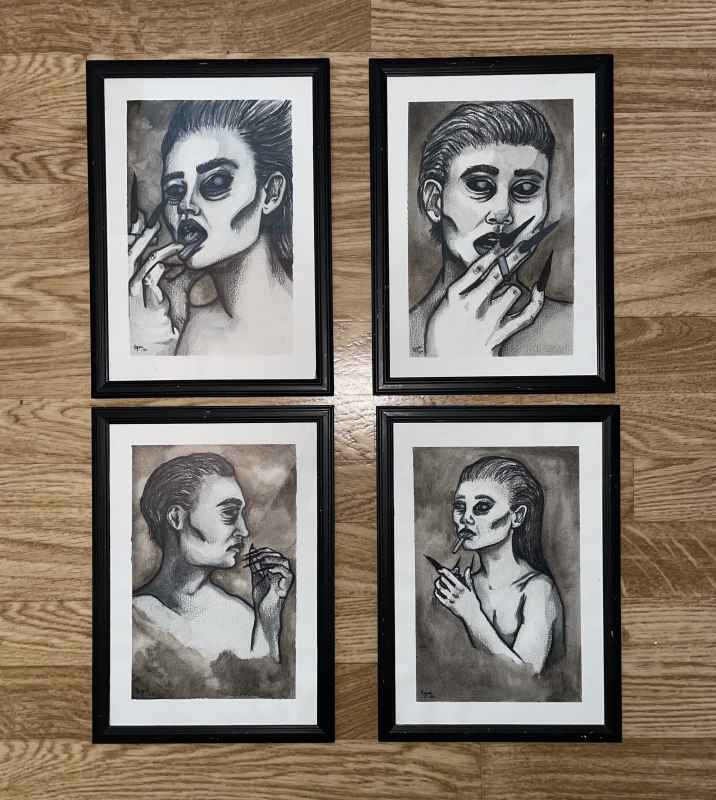 Kuvaus: Vesi- ja puuvärit. Myydään ilman kehystä. KAIKKI 200€ tai 50€ PER. KUVA (a4)