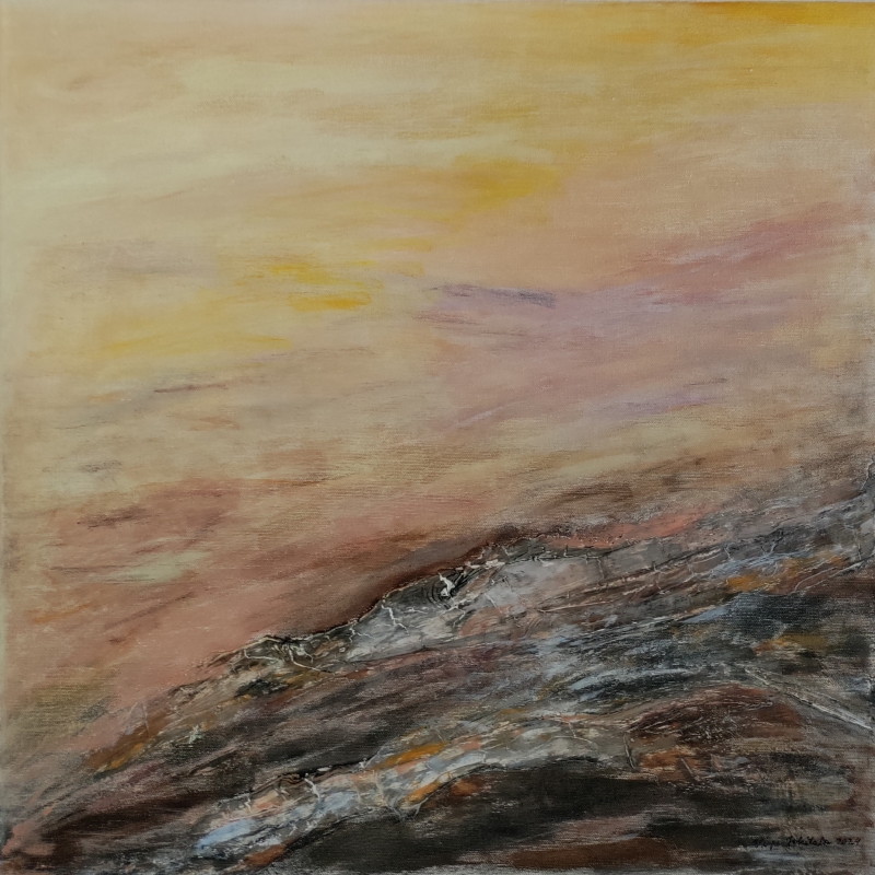 Kuvaus: Värien harmoniaa ja iloa. Ajryylimaalaus runsaalla struktuurilla. Ripustusvalmis. Signeeraus edessä ja takana.