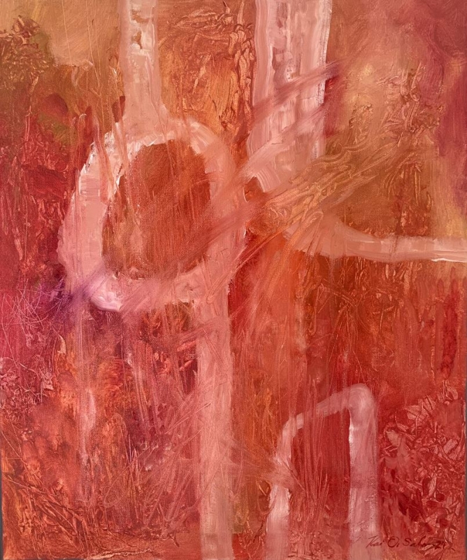 Kuvaus: Abstrakti teos. Punainen ja lämmin - koska kevät tuli. Reunat maalattu. Ripustusvalmis. Uniikki öljyväriteos.