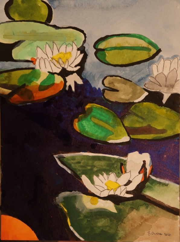 Kuvaus: maalattu akryylimusteilla 290g akvarellipaperille, ei kehystä; postik. sis. hintaan